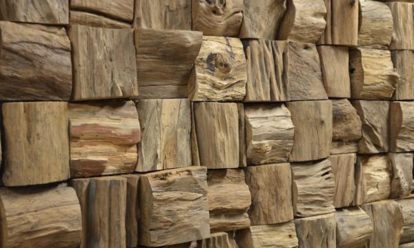 Panels are made of small recovered wood details which are different by two thickness. There are two dominative tones: brown and gray.